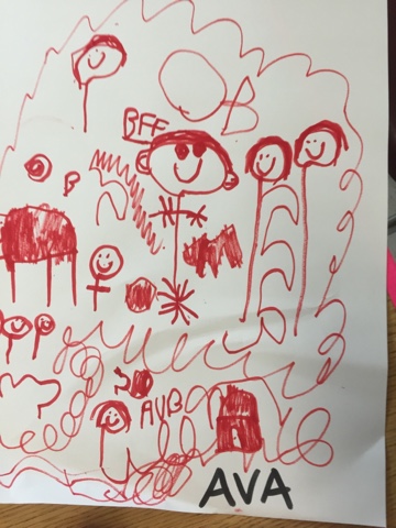 Young Kindergarten at Central and West this week read the book "I don't draw, I color!" by Adam Lehrhaupt. We looked at how the little boy in the story used his color to show emotions and was a very detailed artist. We then drew our own self-portraits. We even had fun singing Head Shoulders Knees and Toes to help us remember all the body parts we wanted to show in our pictures.